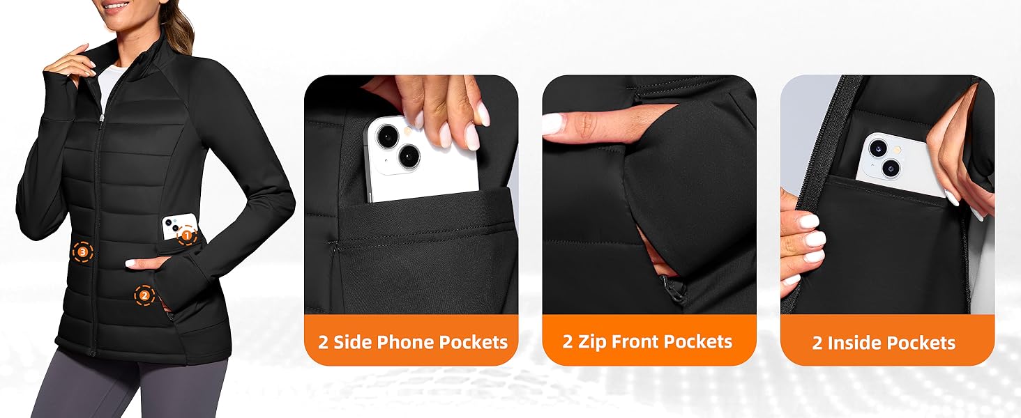 G Gradual Women’s Running Fleece Lined Jackets 6 Pockets Lightweight Water Resistant Puffer Jacket for Hiking Travel